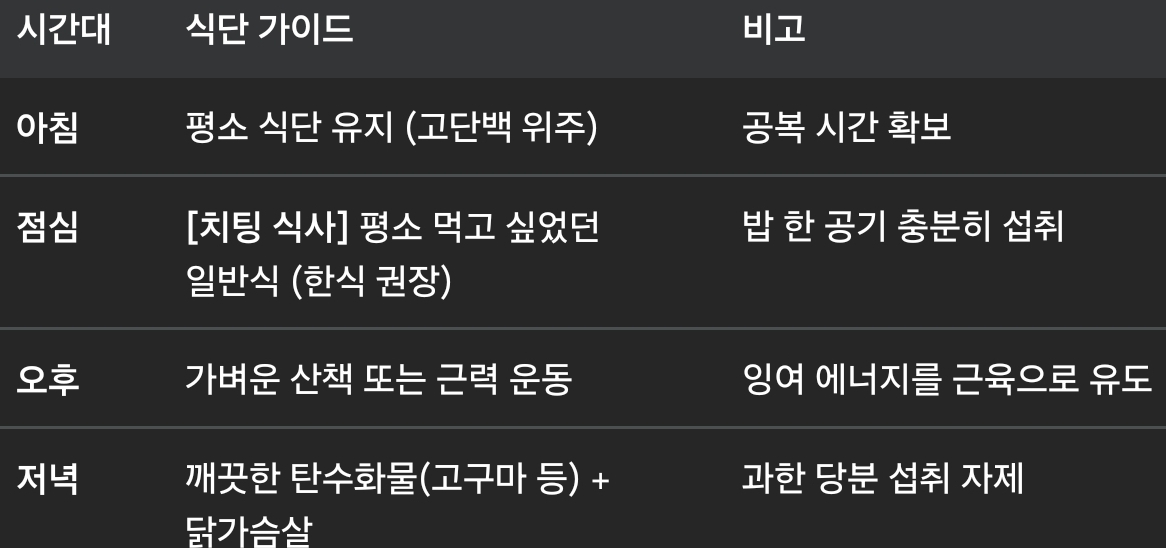 정체기 극복을 위한 치팅데이 루틴 예시