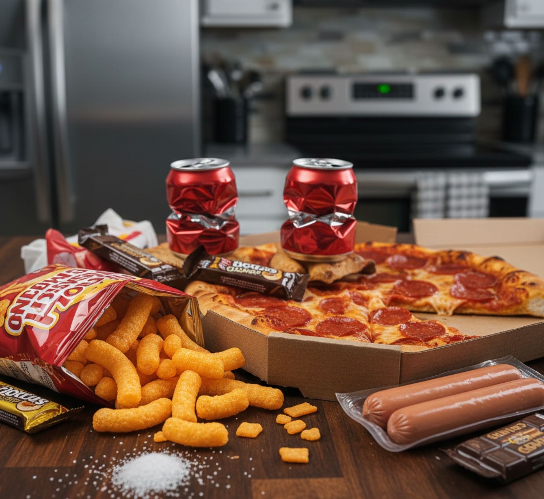탄산음료, 포장된 스낵류, 즉석조리 냉동식품, 가공 육류(소시지 등)가