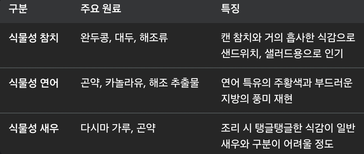 흔히 비건 패티나 닭고기 질감의 식물성 고기를 먼저 떠올리시겠지